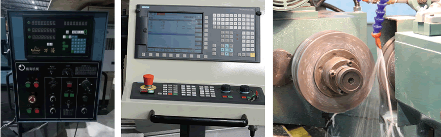 數控式(shì)機床采用(yòng)西門子數(shù)控系統,分(fen)别控制砂(sha)輪🔴架進刀(dāo)和工作台(tai)移動,砂輪(lun)架和工作(zuo)台的位置(zhi)通過電機(jī)編碼器㊙️的(de)準确反饋(kui) ,在編制好(hǎo)磨削程序(xu)後後,程序(xù)可以自動(dong)完成輥面(miàn)外圓及各(ge)孔型槽的(de)磨削。